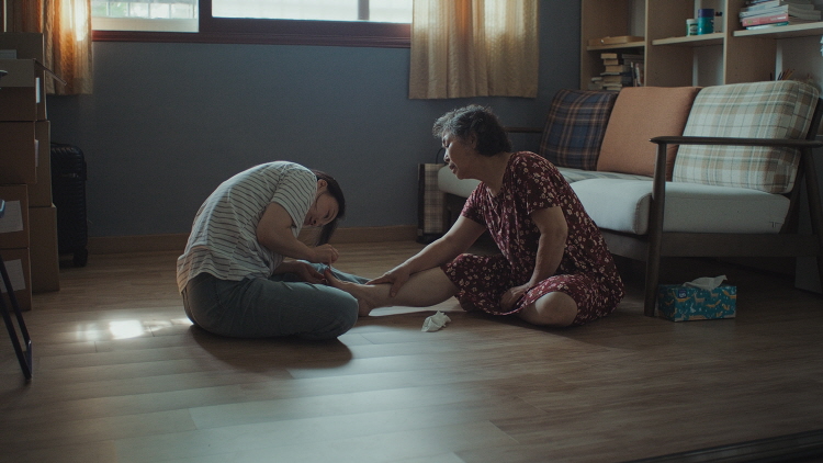 It surely helps that the movie is steadily supported by how effortlessly its two lead actresses complement each other throughout its rather short running time (86 minutes). Jang Sun, who was terrific as the hard-working mother of the young heroine of Lee Ji-eun’s impressive debut feature film “The Hill of the Secrets” (2022), looks quite different here in a very passive and subdued appearance, and she is utterly uncompromising as making no excuse on her character’s many unpleasant sides. Yes, Hong-i is often quite unwise and foolish to say the least, but Jang’s nuanced low-key performance lets us have some understanding on Hong-i’s pathetic behaviors, even though we often observe her from the distance. On the opposite, Byun Joong-hee, a 75-year-old actress who has appeared in a number of notable films such as “Star of Ulsan” (2024) during last several years since she started her acting career in 2014, holds her own place well besides her co-star, and she is particularly good when Seo-hee makes a silent but firm decision for her as well as her daughter around the end of the story.