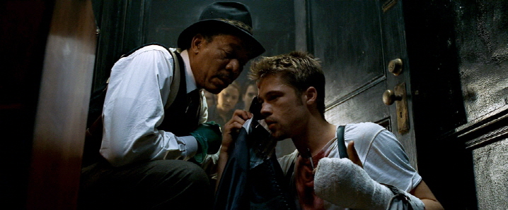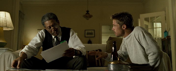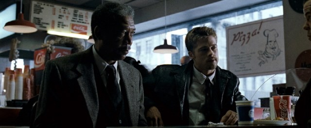 At first, the movie, which is set in some anonymous city, briefly establishes the nascent partnership between two very different cops: Detective Lieutenant William Somerset (Morgan Freeman) and Detective David Mills (Brad Pitt). Having been quite tired of what he has faced for many years, Somerset is planning to retire within a week, and that is why he does not welcome much being partnered with Mills, your typical rookie detective who is rather indiscreet and impulsive besides being too cocky and confident.
