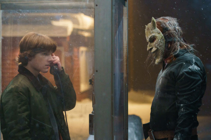 As its several main characters embark on their fight against the Grabber, the movie constantly fills the screen with a chilly sense of dread. Whenever Gwen gets asleep, the movie adds a nice visual touch for accentuating the rather hazy condition of her unconsciousness, and we seldom get confused even when it busily goes back and forth between reality and dream. While surely often reminiscent of Craven’s aforementioned movie and its several sequels, the movie distinguishes itself with a number of effective moments to unnerve or thrill us, and it does not disappoint us at all when everything in the story culminates to the climactic sequence unfolded across a big frozen lake.