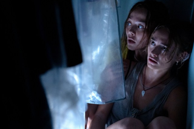 As relentlessly cornered and menaced by Ben along the story, Lucy and several other main characters are certainly thrown into more panic and fear, but they also try to find any possible way for their survival as much as possible. What follows next is a series of generic scenes where some of them must move silently and carefully in the unlit spaces inside the house, but director/co-writer Johannes Roberts, who is no stranger to horror movies considering his several previous films such as “47 Meters Down” (2017) and “The Strangers: Prey at Night” (2018), and his crew members including cinematographer Stephen Murphy and composer Adrian Johnston, whose electronic score is clearly attempting to emulate John Carpenter’s iconic synthesizer score in “Halloween”, did a competent job of handling these conventional moments with enough sense of dread to hold our attention for a while at least (I particularly like how Ben expresses his raging feelings via his little communication tool, by the way).