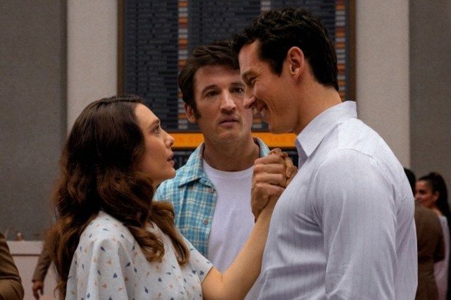The movie surely depends a lot on the good comic chemistry between its three main performers. While Elizabeth Olsen ably holds the middle ground, Mile Teller and Callum Turner smoothly go up and down along the narrative as demanded, and they are all convincing as flawed but complex human figures we can care more about. Around these three main performers, John Early, Olga Merediz, and Da’Vine Joy Randolph have each own little comic moment to be savored, and Randolph, who has been more prominent thanks to her recent Oscar-winning supporting turn in “The Holdovers” (2023), certainly steals the show whenever she appears on the screen.