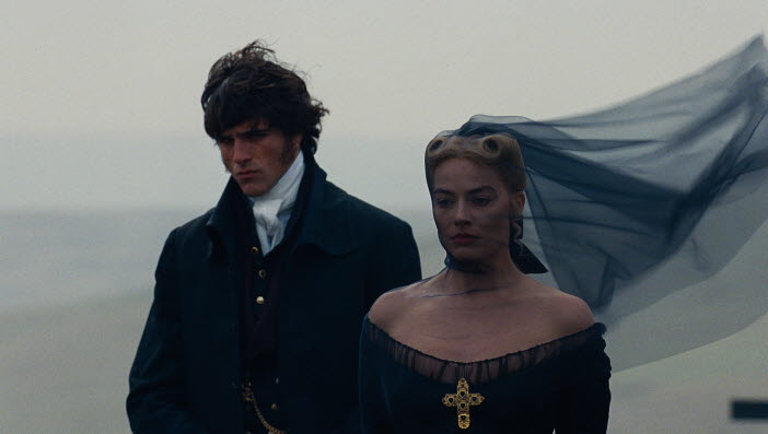 In the end, due to a moment of misunderstanding caused by Nelly, who is now played by Hong Chau, Heathcliff eventually leaves not long after Cathy accepts Edgar’s proposal, and Cathy certainly regrets, but she marries Edgar anyway. Edgar expectedly throws a lot of luxury onto Cathy as her wealthy husband, and the movie gleefully throws many deliberately anachronistic touches onto the screen as accompanied with the modernistic score by Anthony Willis and the cheeky songs by Charli XCX.