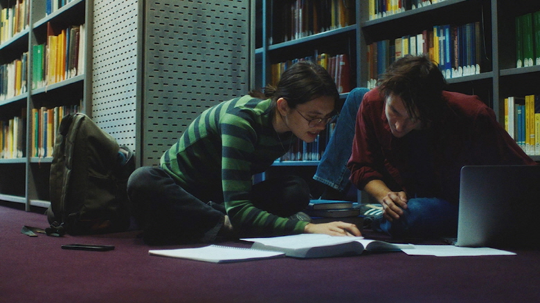 Of course, this is quite familiar to anyone who watched a number of vampire romance films including those Twilight flicks or more sophisticated ones such as “Let the Right One In” (2008) or “A Girl Walks Home Alone at Night” (2014), but the screenplay by director Ariane Louis-Seize and her co-writer Christine Doyon does its own things while taking its time for more humor and character development. Despite her inherent dark nature, Sasha’s private space is filled with a number of colorful stuffs, and there is a lovely scene where the camera simply observes how she connects more with Paul as showing more of herself to him. At one point, she even tries a bit of music for expressing more of her feelings in front of him, and that is one of the sweetest moments in the film.